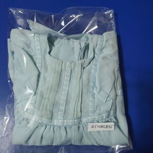 Vintage Girls Handmade Blue Dress Puff Sleeves Back Bow Bodice Pleats & Ruffles