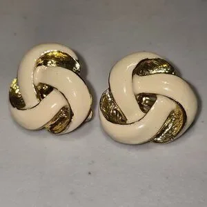 Vintage Cream Colour Enamel Gold Tone Clip-on Earrings