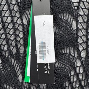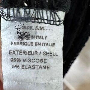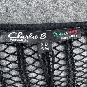 Keywords: Charlie B cardigan, black crochet knit, open front cardigan, waterfall duster, women's S/M cardigan, made in Italy fashion, viscose elastane blend, lightweight knitwear, bohemian style, beach cover up, evening layer, designer cardigan