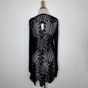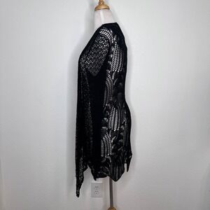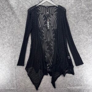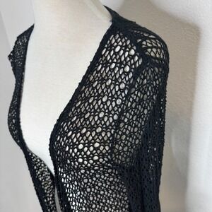 Charlie B Women Crochet Knit Open Front Waterfall Duster Cardigan Size S/M Black