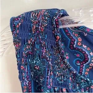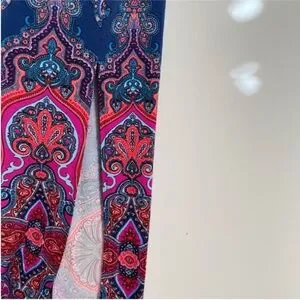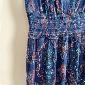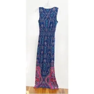 Adrianna Papell dress blue pink maxi paisley sleeveless stretchy side splits small