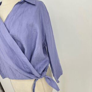 Valerie Stevens Womens 100% linen Wrap Blouse XL 3/4 Sleeve Purple Front Tie