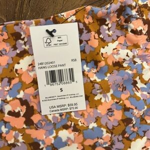 New tags. Stretchy waistband, flared bottoms. Flower print billabong hang loose pant
