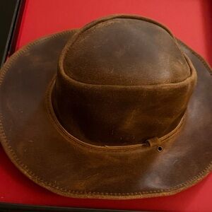 NWOT Discover timeless style with this classic brown leather hat. Perfect for adding a touch of sophistication to any outfit.