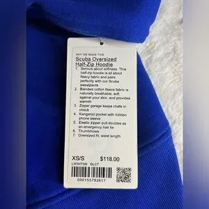 NWT Lululemon Scuba Oversized Half-Zip Hoodie Galactic Cobalt SIZE XS / S