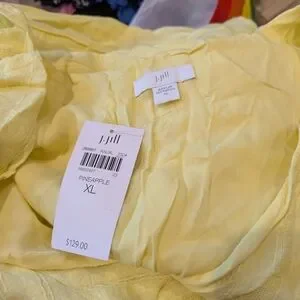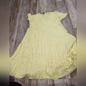 J. Jill Women's Large Yellow Pineapple Jacquard Tiered V Neck Cotton Rayon Dress