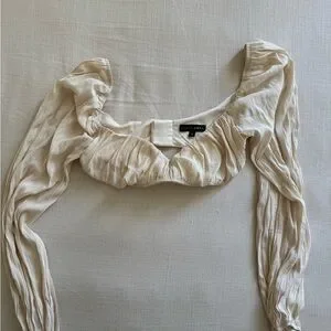Chic cream blouse with ruched detailing. Elegant and versatile. Perfect for any occasion.