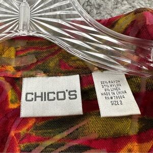 Chico's Long Sleeve Floral Button Up Linen Blend Tropical Artsty Red Women's 2 L