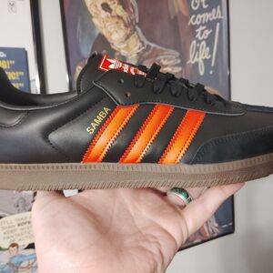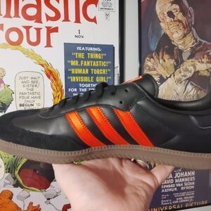 Adidas Originals Sambas Black Leather with Neon (glow) Orange Stripes Size 11