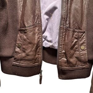 Anthropologie Idra Brown Bomber Leather Jacket Floral Lining Large