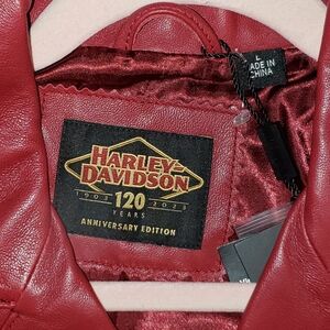 Harley-Davidson Red Leather Jacket Womens Size M-L 120th Anniversary Biker