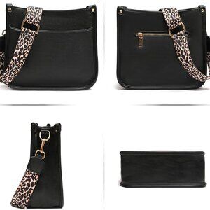 Women's Crossbody Shoulder Bag with Leopard Guitar Strap,Vegan Faux Leather Purs
