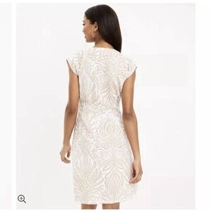 Ann Taylor LOFT Sheath Shirt Dress Sz 4P Linen Blend Button Front Paisley Beige