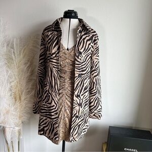 Vintage Chaps Black Tan Animal Zebra Print Trench Coat