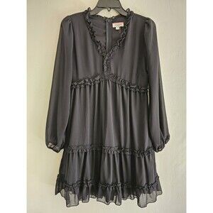 Andree By Unit Casual Summer Ruffle V Neck Mini Dresses Long Sleeves Size Small