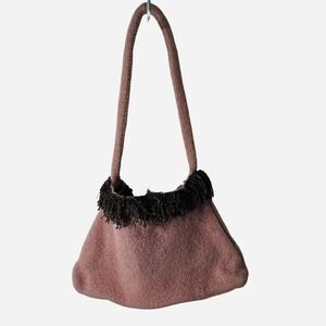 Rag Bags Blowing Rock Handcrafted Shoulder Bag Upcycled Fringe Pockets Mauve
