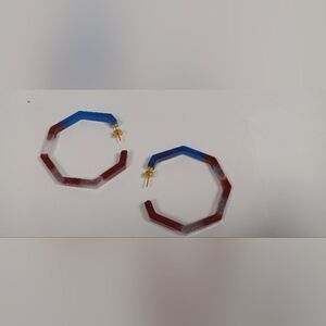CLEARANCE Red, white and blue resin geometric hoop earrings