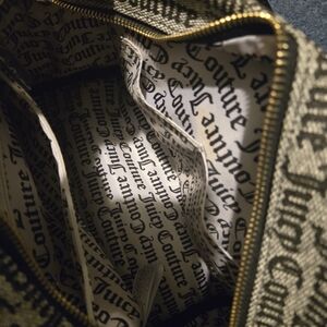 Stylish Juicy Couture handbag in black and gold. Features iconic logo interior.