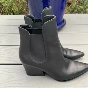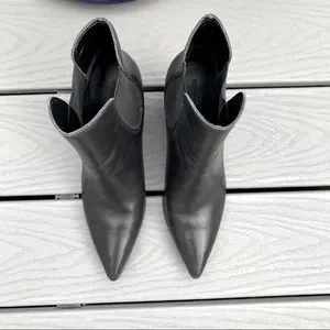 Chic black ankle booties. Pointed toe. Versatile style. Purchased from a listing saying that they were 9.5. But they’re actually 8.5, so unfortunately I was not able to wear them. Reposhing to purchase the correct size.