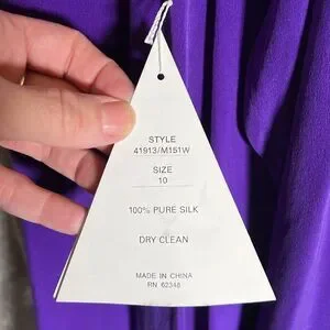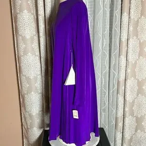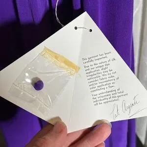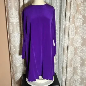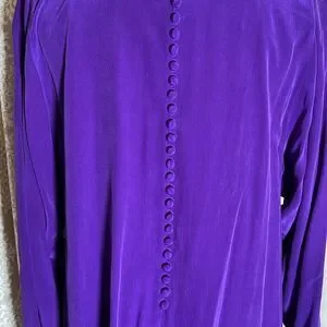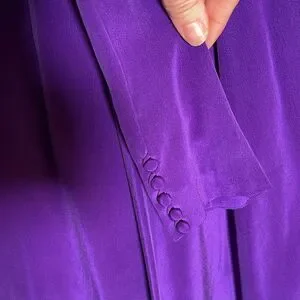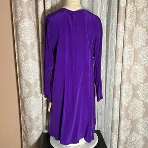 Stunning vintage Pat Argenti Collection long sleeve dress in vibrant royal purple. Made from luxurious 100% silk, this elegant piece features a relaxed A-line silhouette, long sleeves with unique split cuffs, and delicate fabric-covered buttons at the back. RN 62348. A timeless and rare find perfect for collectors, formal occasions, or vintage lovers.