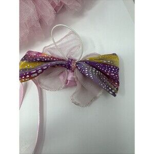 Lot of 2 vintage Build A Bear BAB dresses / costumes for a princess, fairy, ballerina, etc. Fits standard size bears. Purple fairy dress with stars glitter and ribbons. Pink ballerina dress with ballet slippers - pink with tutu style skirt and very sparkly. Plus original hair bow! Two pairs of satin style bloomers panties - white and pink with rose. Two hangers - hangers do have some creasing as shown.