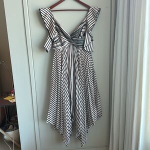 Self-Portrait Black and White Striped Midi Dress