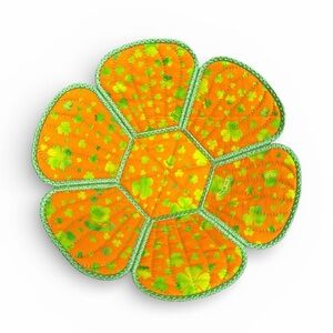 Hand Crafted Basket Center Piece Bowl Quilted 8 round x 3 in tall Shamrock