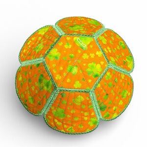 Bright green fabric bowl with green Shamrock and floral pattern. Perfect for decor or storage.