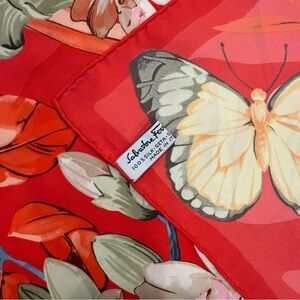 Authentic Salvatore Ferragamo Red and Cream Butterfly Silk Scarf