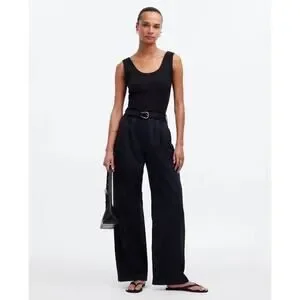 Madewell Harlow Wide Leg Pant Drapey Twill True Black Lyocell Linen Womens 8