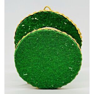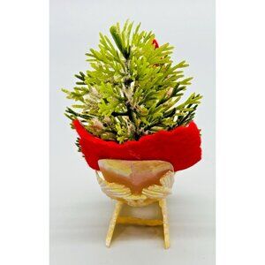 Vintage Christmas Ornament Plastic Face Santa in Sleigh Felt Bird Feeder Seeds
