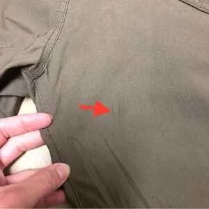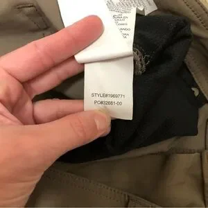 Stretchy. Very good condition other than back right side (close to buttocks) a spot down with arrow. May could spot clean out.*sizing print missing. Sizing based on measurements.
