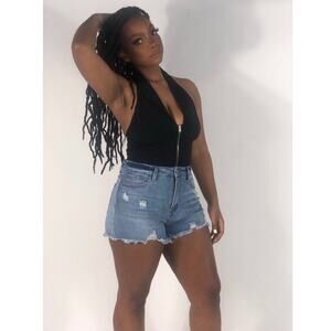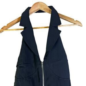 NWT Tea N Cup Bodysuit Womens L Black Halter Sleeveless Zip Front Sexy Clubwear