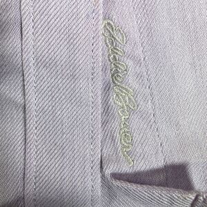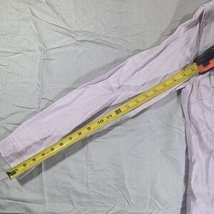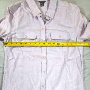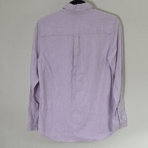 Stylish lavender button down shirt. Features two front pockets. Perfect for casual or formal wear.