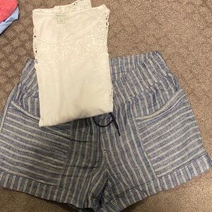 Athleta Blue Striped High Waist Shorts