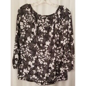 Michael Kors Women's Top Floral Design Black & White 3/4 Sleeve Size Large
