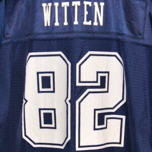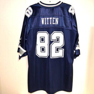 Pro Line NFL Dallas Cowboys Jersey #82 Jason Witten – Size: 2XL. This item is in excellent condition with no holes, tears, or stains visible. This jersey is dark blue in color and 100% polyester. Please look carefully at the pictures for more details because they show the actual item you will receive, nothing else is included unless noted. This item comes from a clean, smoke free and pet free environment. (ML00014)