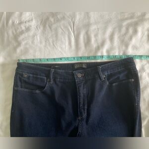 Talbots Stylish dark blue jeans with a straight leg design. Perfect for versatile wear. Comfortable and chic. Five pocket design.