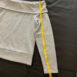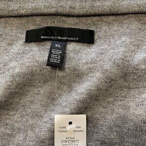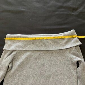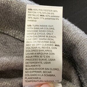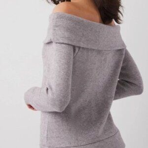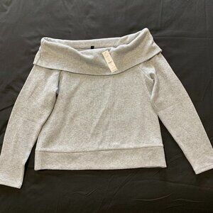 New with tags. White House Black Market off the shoulder long sleeves women sweater. Color is heathered mercury silver. It has a shiny glitter that is not captured in the pictures. I added a video to show the true fabric shine so please check it out. Perfect for the holidays. Banded bottom around the waist. Perfect condition, no flaws. Model photo for demonstration only and is not the real product. Size XL.