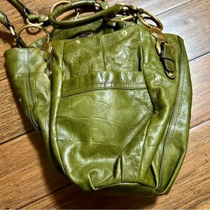B Makowsky Olive Green Leather Hobo Bag Purse