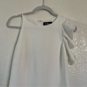 Lulus Dinah White One-Shoulder Ruffle Sleeve Dress Size Small EUC