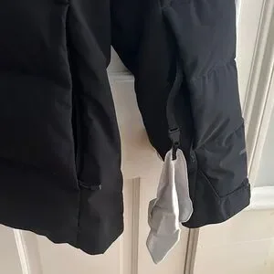 The North Face women’s Corefire jacket. Jacket hits at hips, super warm and features zippered pockets, underarm venting and a sleeve pocket for your goggles or sunglasses.