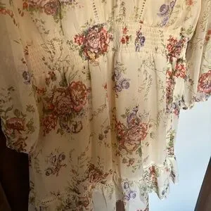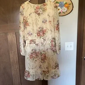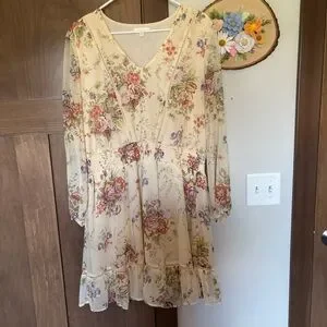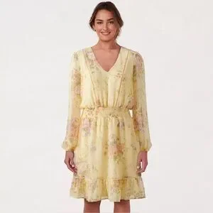LC Lauren Conrad V-Neck Flounce Dress Yellow Floral Chiffon Size XL