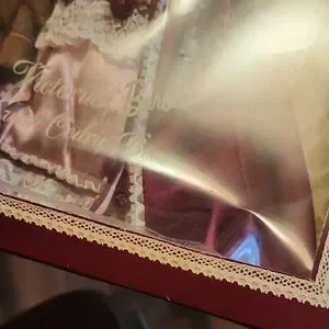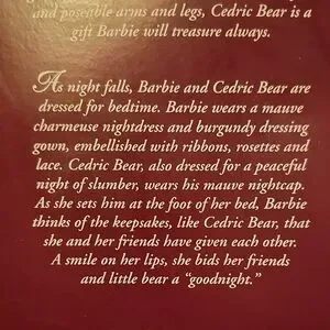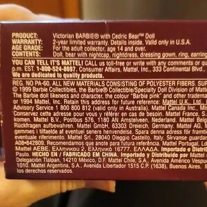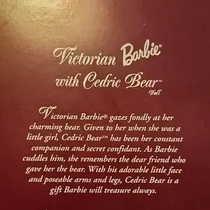 Elegant Victorian Barbie doll dressed in a stunning purple gown. Perfect for collectors and enthusiasts. Rare find. Cedric is loose inside the box since rubber bands holding him up have deteriorated over time.