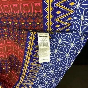 Women’s NWT Desigual Red Blue Yellow Button Up Long Sleeve Blouse Size Medium