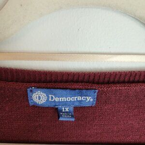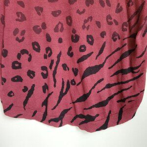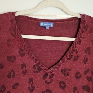 Democracy 1X Animal Print V-Neck Long Sleeve Sweater Burgundy 100% Cotton