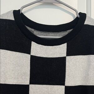 Elevate your style with this chic black and gray checkered crew neck sweater. Perfect for versatile wear.