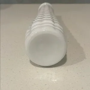 This elegant white vase showcases a beautifully textured surface with raised ridges, creating a captivating visual effect. The scalloped rim adds a touch of sophistication, making it a perfect accent piece for any decor.
