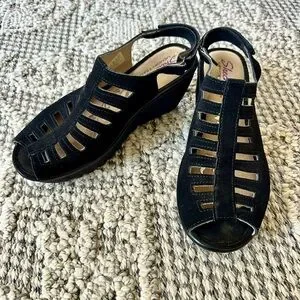 Comfortable and stylish black wedges. Perfect for casual outings.