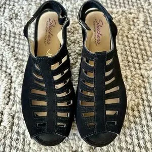 Skechers Black Wedge Sandals
